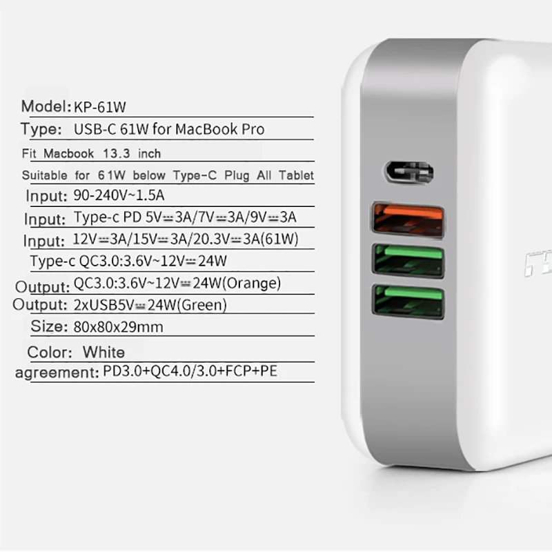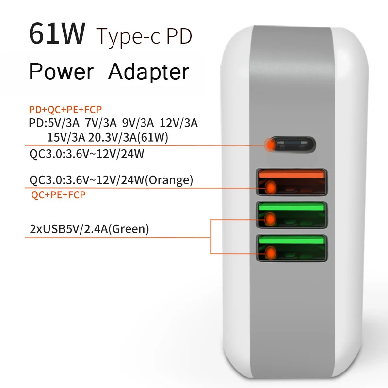 Product Name: FERISING 60W USB Type C Wall Charger QC3.0 QC4.0 Power for Apple MacBook iPhone XS XR Xiaomi USB C Fast PD Quick Charge 3.0 4.0