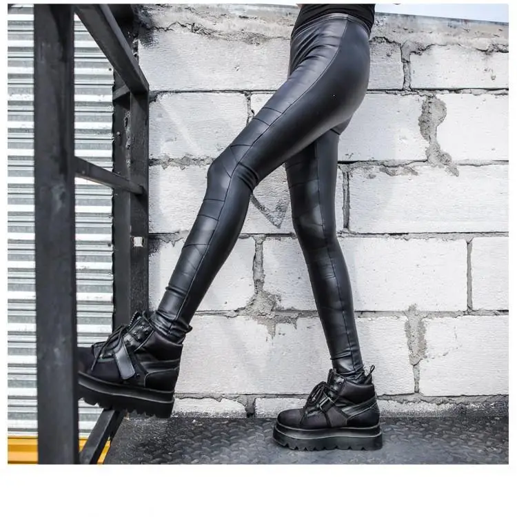 Product Name: Punk Thick Velvet Bandage Leather Leggins Women Sexy Splicing High Waist Warm Leggings Pants Stretch Trousers